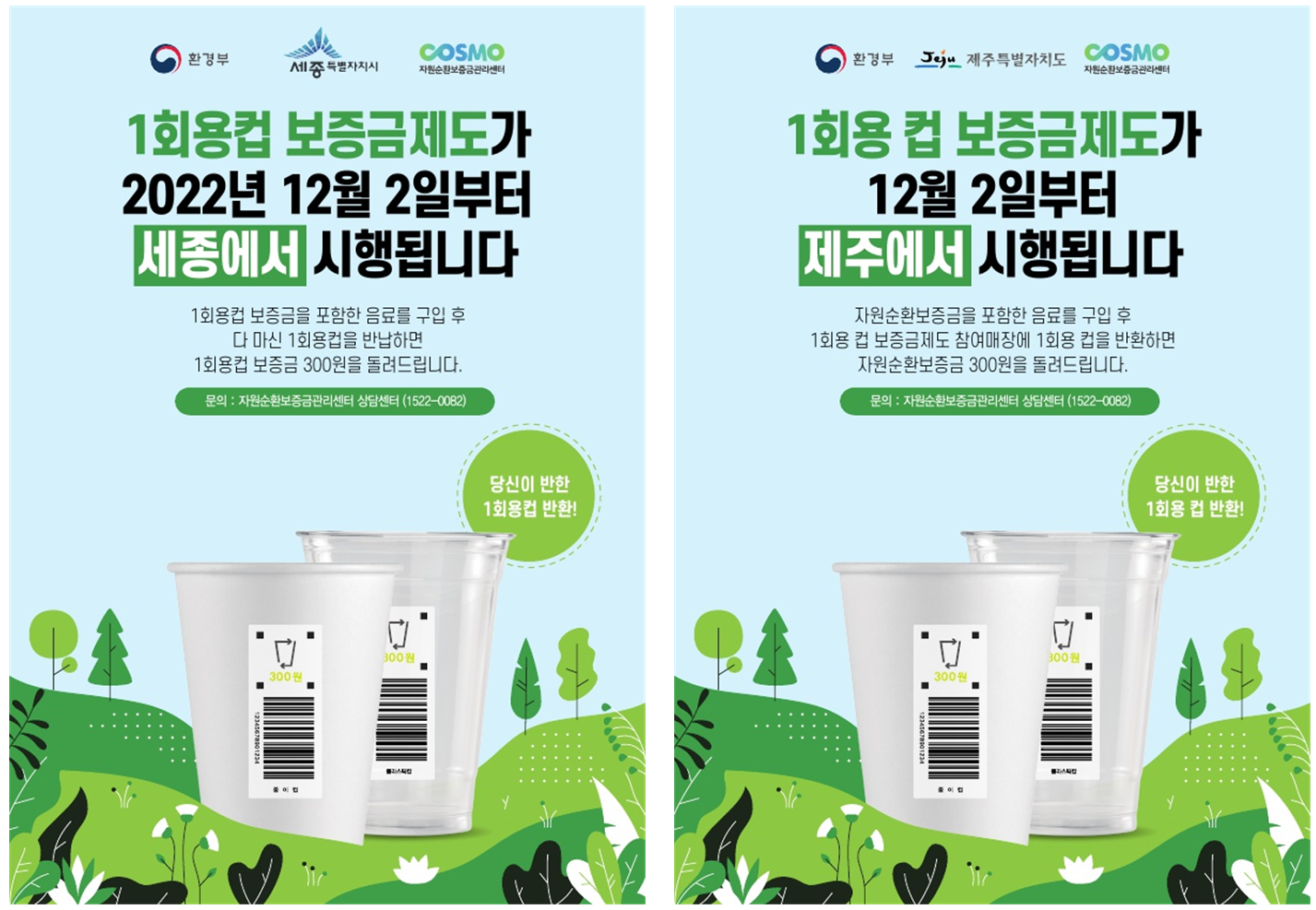 일회용컵 보증금제를 통하여 환경을 지켜봐요! 소비자와 매장에 혜택까지 제공! 세종과 제주에서 시작해요!