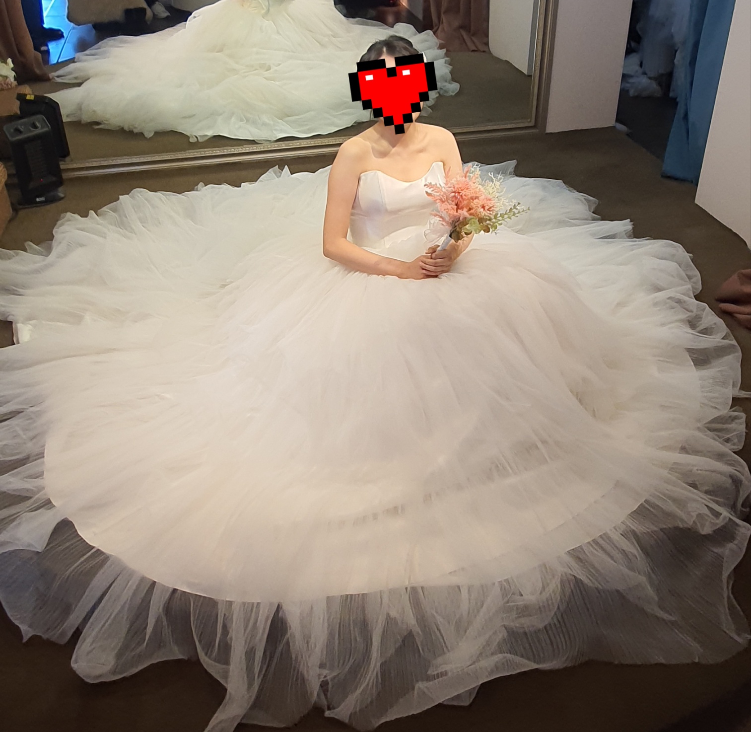 아 이 때 진짜 좋았던 게 사장님이 스튜디오 촬영이라고 촬영용 드레스를 보여주시는 게 아니라 진짜 웨딩 드레스들 중에 4벌이나 골라 가져갈 수 있게 해주셔서 넘 좋았어여!!