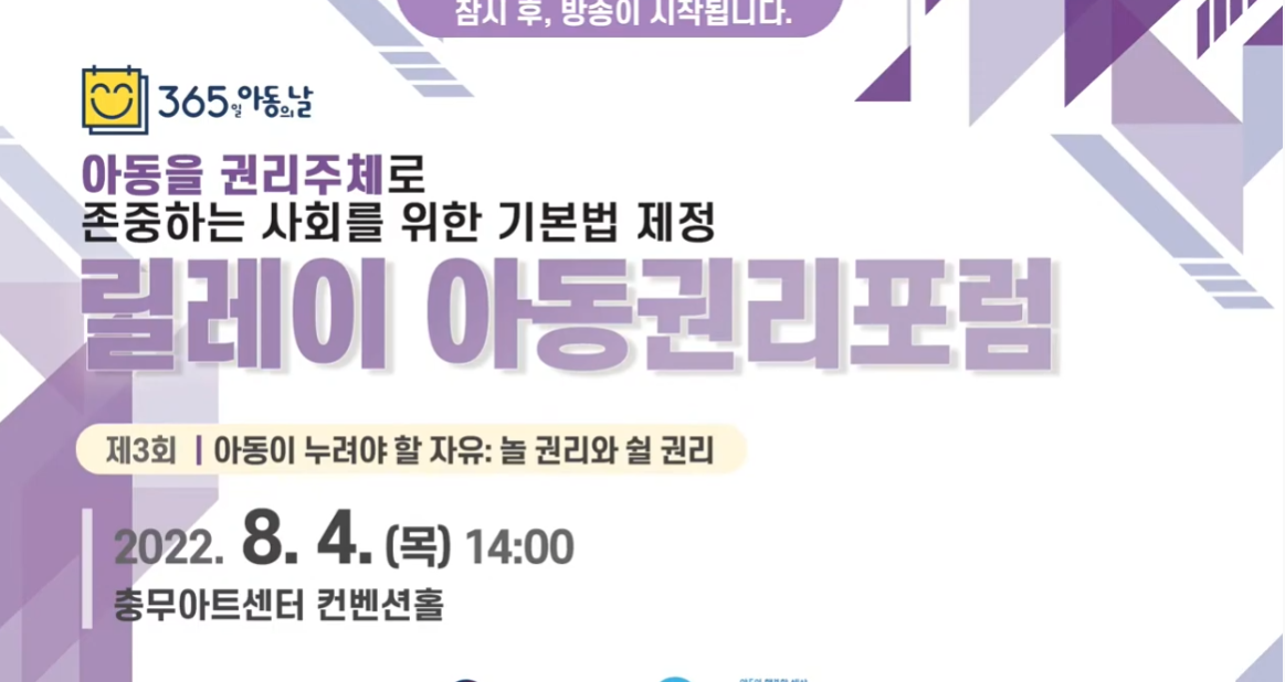 보건복지부와 아동권리보장원(원장 윤혜미)은 8월 4일(목) 오후 2시 충무아트센터 컨벤션 홀(서울 중구 소재)에서 제3차 “아동기본법 제정을 위한 연속 아동권리 공개토론회”를 개최하였어요. (가칭) 아동기본법은 아동정책의 기본적 이념과 목표를 제시하고, 아동의 핵심적 권리와 이를 보장하기 위한 국가, 사회, 가정의 책무 등을 규정하는 기본법입니다!