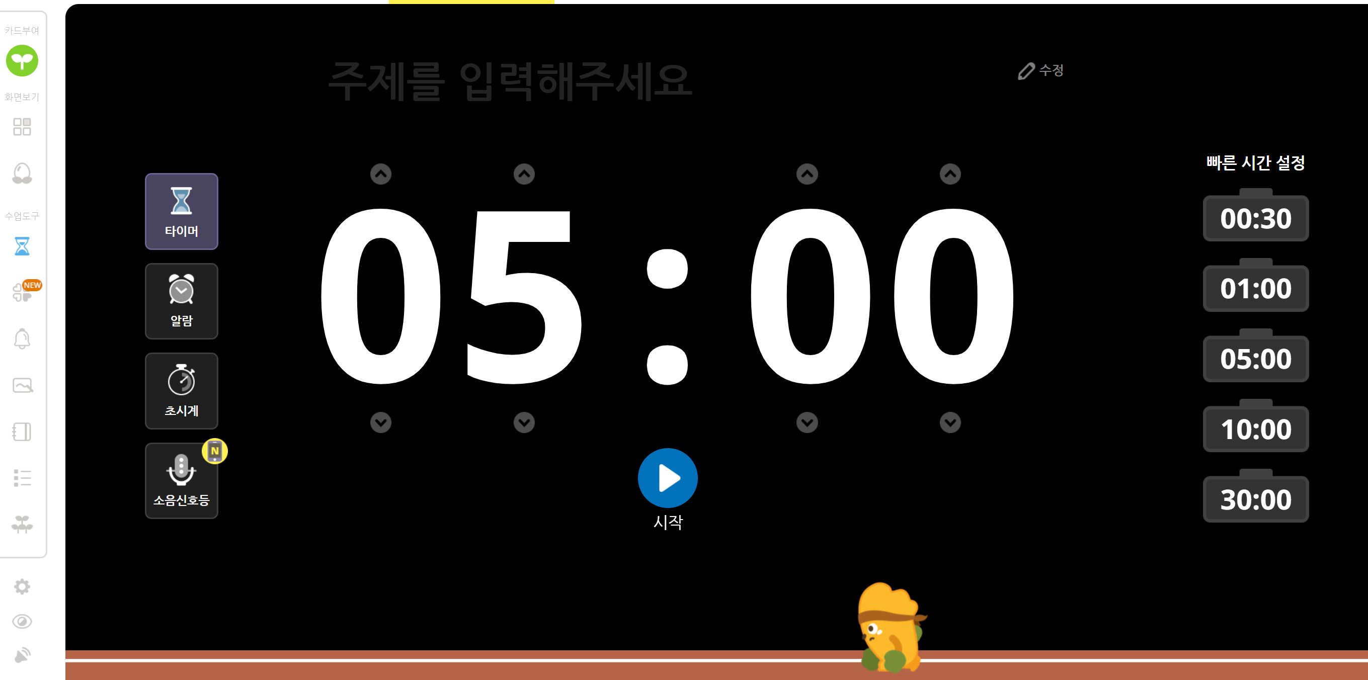 수업시간 중 남은 활동 시간 표시하기에 유용한 타이머 기능입니다.