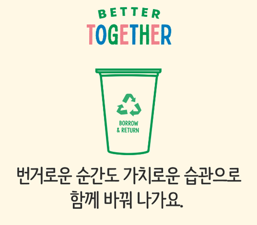 다회용 컵이어서 커피가 남아도 그대로 컵을 들고 커피점을 나올 수 있는 것은 정말 큰 장점이였어요! 여러 번 제로 카페를 이용한 친구에게 친환경 제로 카페와 리유저블 컵을 이용한 소감을 물어봤어요. 친구는 초반엔 반납기에 리유저블 컵을 반납하는 과정이 조금 번거롭다 생각했지만, 막상 해보니 익숙해져서 아무렇지도 않더라고 말했어요.