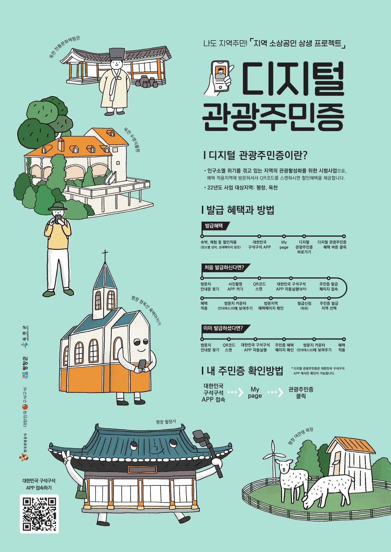 ‘대한민국 구석구석’ 앱으로 관광주민증 받으면 강원 평창, 충북 옥천 방문 시 할인 혜택을 드려요!